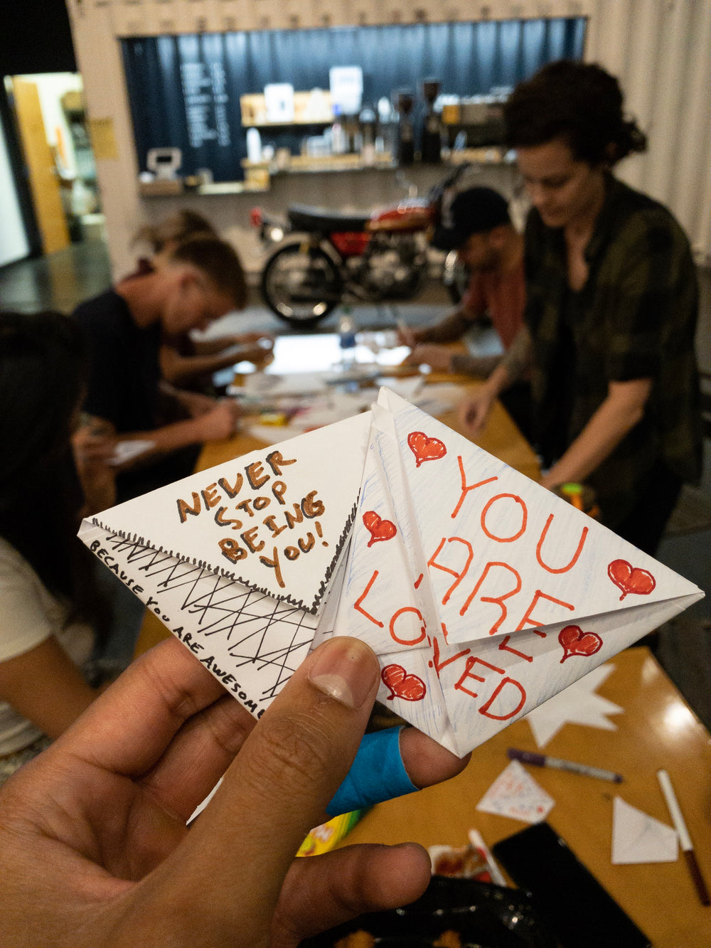 Bi-monthly our wonderful volunteers would come together to prepare messages for those receiving aid and service by TCF and DCC. This simple opportunity in union gave people a means to feel connected and appreciated through a good cause.